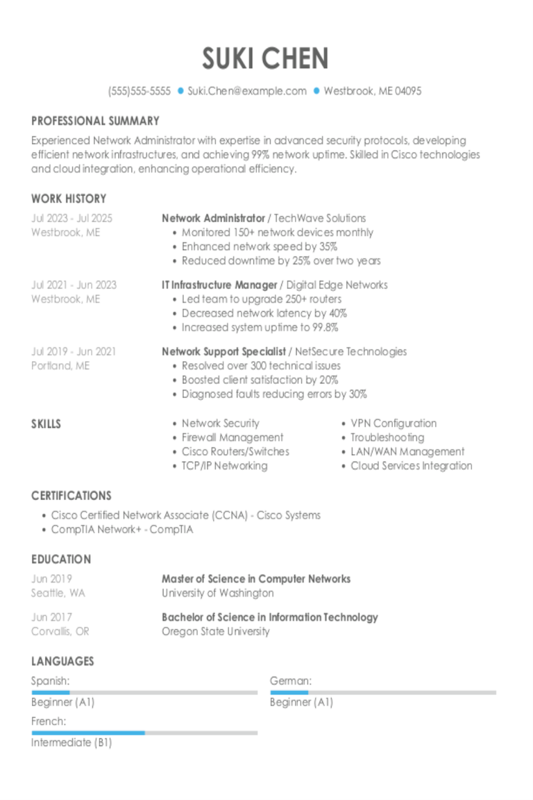 If you implemented a new process that reduced downtime or streamlined data storage by 20%, mention it. Use action verbs like “developed,” “implemented,” or “improved” to make each point stand out.