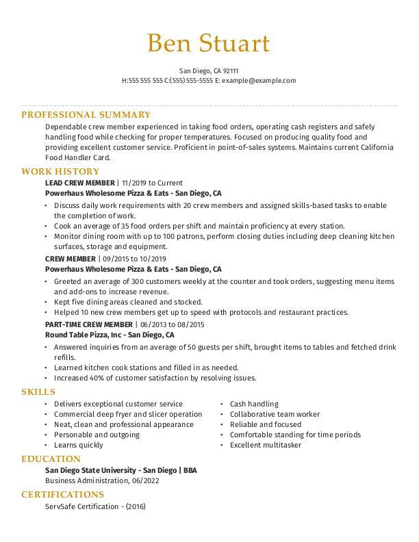 More Crew Member Resume Examples