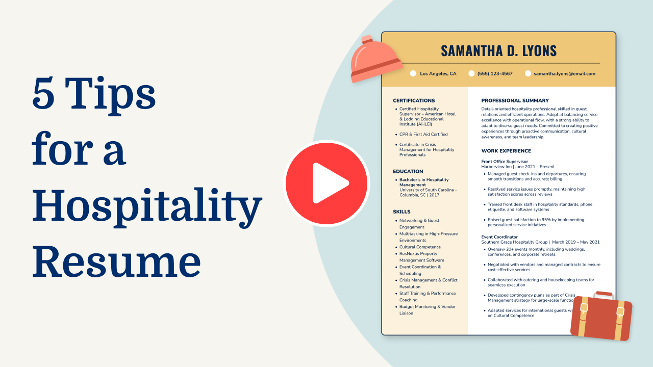 - Showcase education and training: List any hospitality-related courses or certifications. If you’ve completed workshops in customer service or conflict resolution, include those as well.
