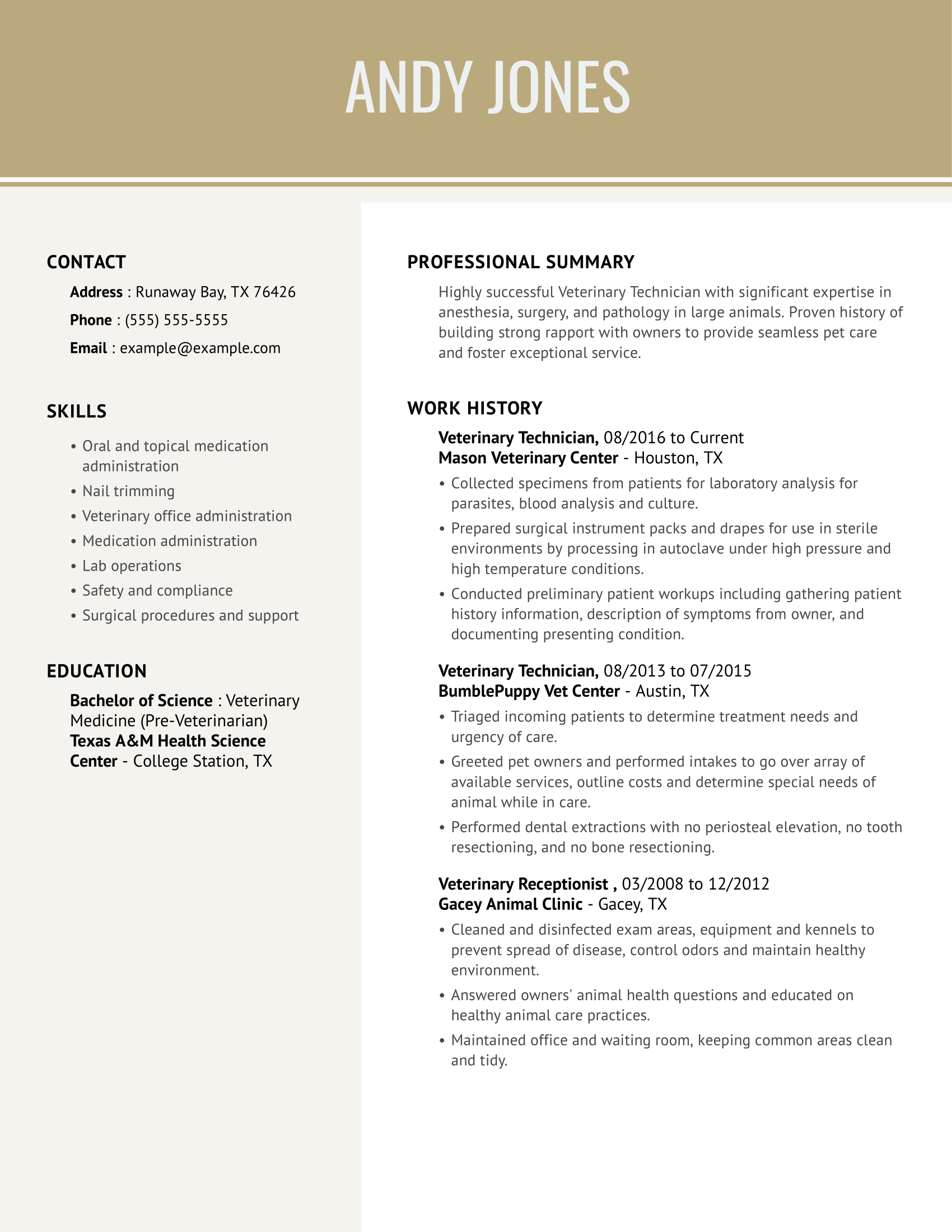 Veterinary Technician Resume Examples & Templates for 2025