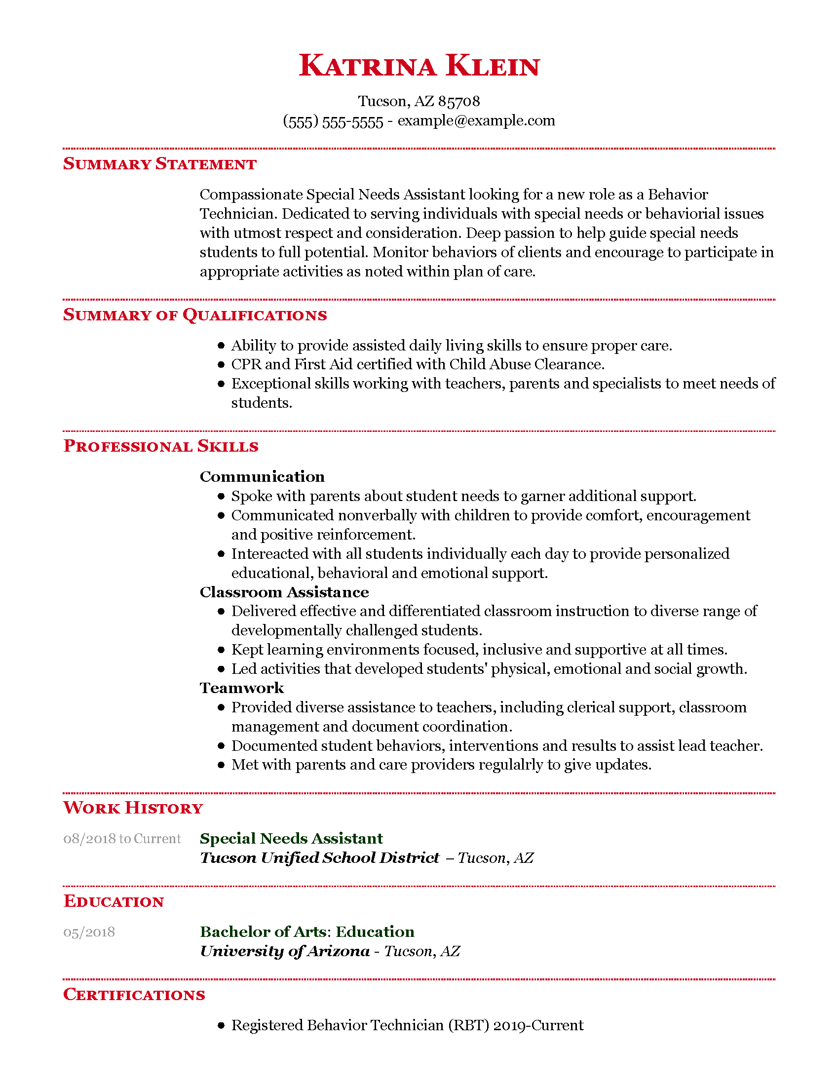 Behavior Technician Resume Examples & Templates for 2025
