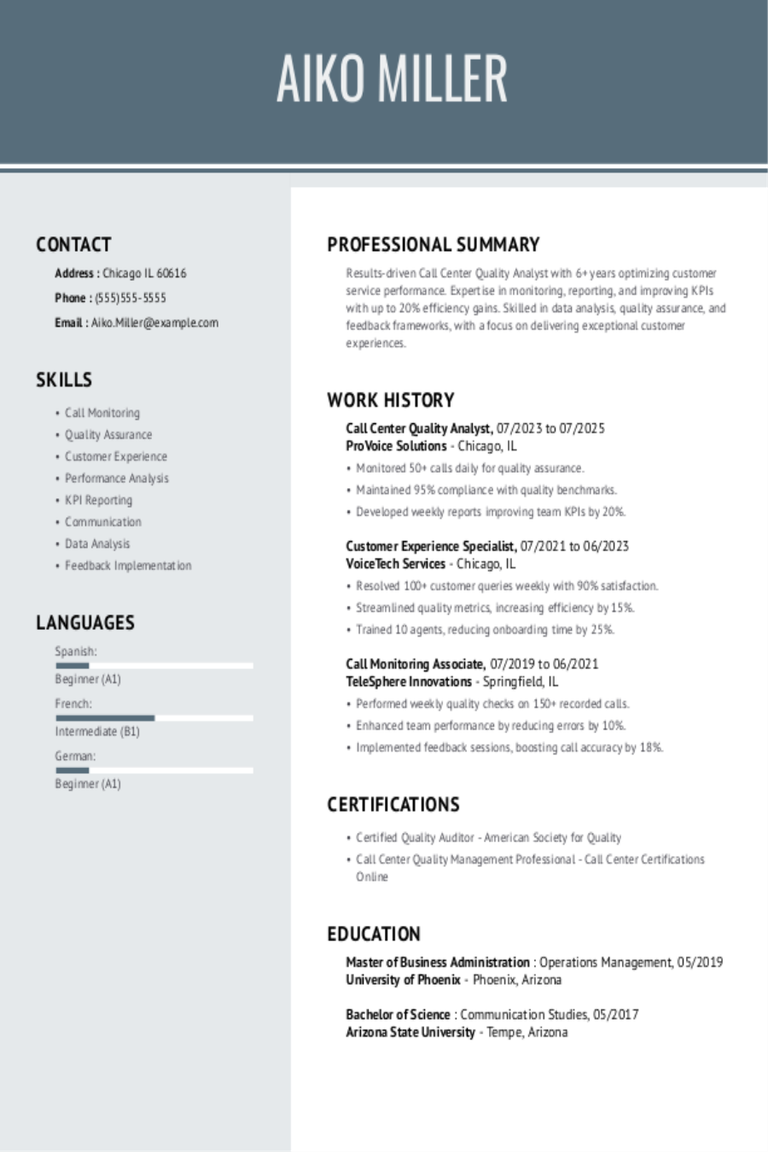 Take a look at our quality control resume examples to see the best ways to highlight your attention to detail, analytical skills, and technical expertise. Use these examples as a guide to create a compelling resume that stands out.
